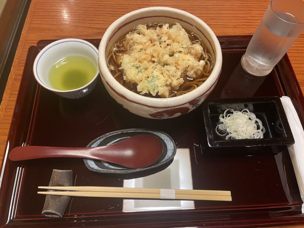 Today, I visited with my colleagues and enjoyed the Kakiage Soba: hot, al dente soba in a savory dashi broth, topped with crispy kakiage fritters made from shrimp, onion, carrot, and lotus root.