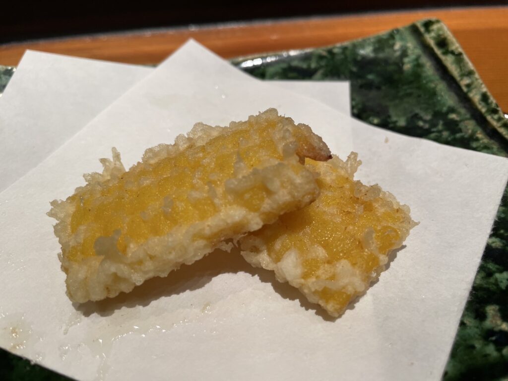 At Ten-yuu, tempura is elevated to an art form. Each piece is light, crispy, and never feels heavy—a true testament to the chef’s refined technique. Despite being fried, the batter is airy and delicate, letting the natural flavors of the ingredients shine through.